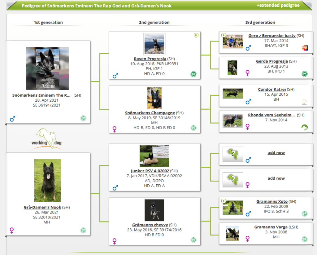 L-kull Schäfer E: SE36191/2021 Snömarkens Eminem The Rap God U: SE32610/2021 Grå-Damen’s Nook Födda :